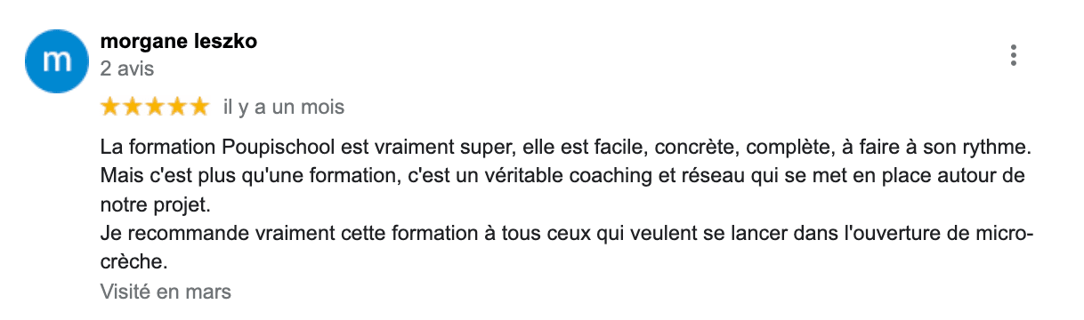 Ses compétences juridiques couplées à sa passion pour la gestion d'établissements dédiés aux jeunes enfants font d'elle une personne inspirante et une précieuse mentor pour la communauté PoupiSchool.